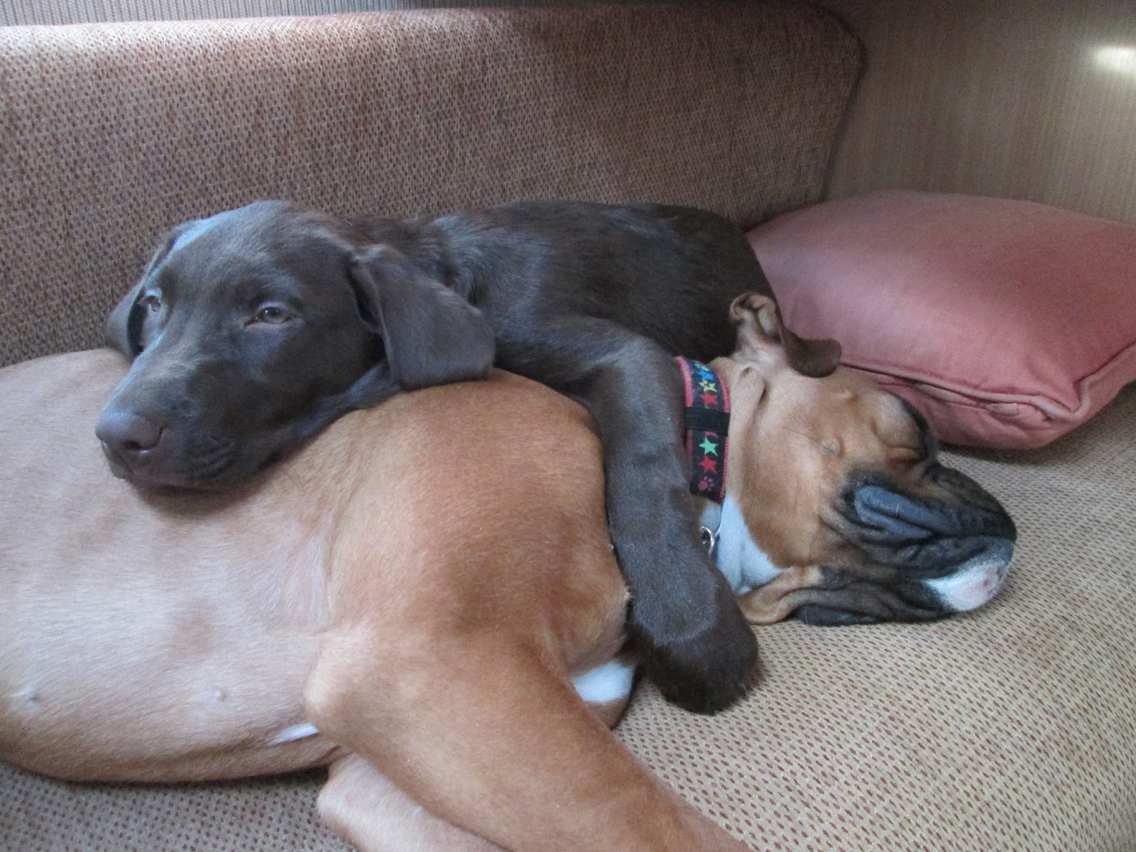 ... but settling in was helped, of course, by snuggles with big sis, Pebbles (cue, aaaws).