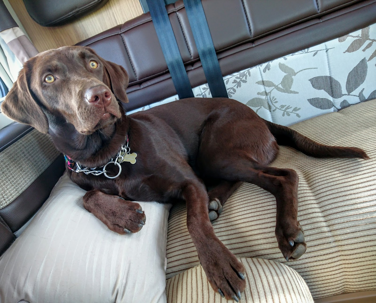 Still northwards we go, enjoying a break at the Camping & Caravanning Club's Barnard Castle site. In the afternoon we each take a bike ride (we can't yet let leave the pups alone in the van). Islay learns how to get comfy on a front seat and we all begin to get familiar with life in our new travelling home.